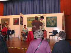 Im Ausstellungsbereich konnte man kleine Patchwork-kunstwerke bestaunen und außerdem noch "Kluge StrickArt". Diese gestrickten Bilder sehen richtig toll aus.