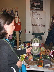 messestand handmadeAls Strickbegeisterte bin ich auch auf meine Kosten gekommen. Bei dem Stand von Stil-Blüte hab ich mich sehr zurückhalten müssen, daß ich nicht den ganzen Stand kaufe. Lauter Wolle von der ich bis jetzt nur im Internet gelesen habe (Kauni, handgefärbte Opal, Oldmill etc).